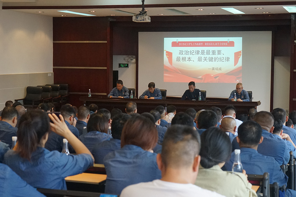 公司黨委副書記、紀委書記龔紹成為全體黨員上了“政治紀律是最重要、最根本,最關(guān)鍵的紀律”的廉政黨課。龔紹成同志指出,在全黨開展黨紀學習教育,是加強黨的紀律建設(shè)、推動全面從嚴治黨向縱深發(fā)展的重要舉措。各黨支部要教育引導(dǎo)黨員面臨當前的形勢及所肩負任務(wù),要加強紀律建設(shè),要維護黨的團結(jié)統(tǒng)一,步調(diào)一致向前進。要提醒和引導(dǎo)公司黨員干部要講政治、顧大局、守紀律、講規(guī)矩,廉潔自律,始終做一個有政治擔當和政治定力的共產(chǎn)黨人。