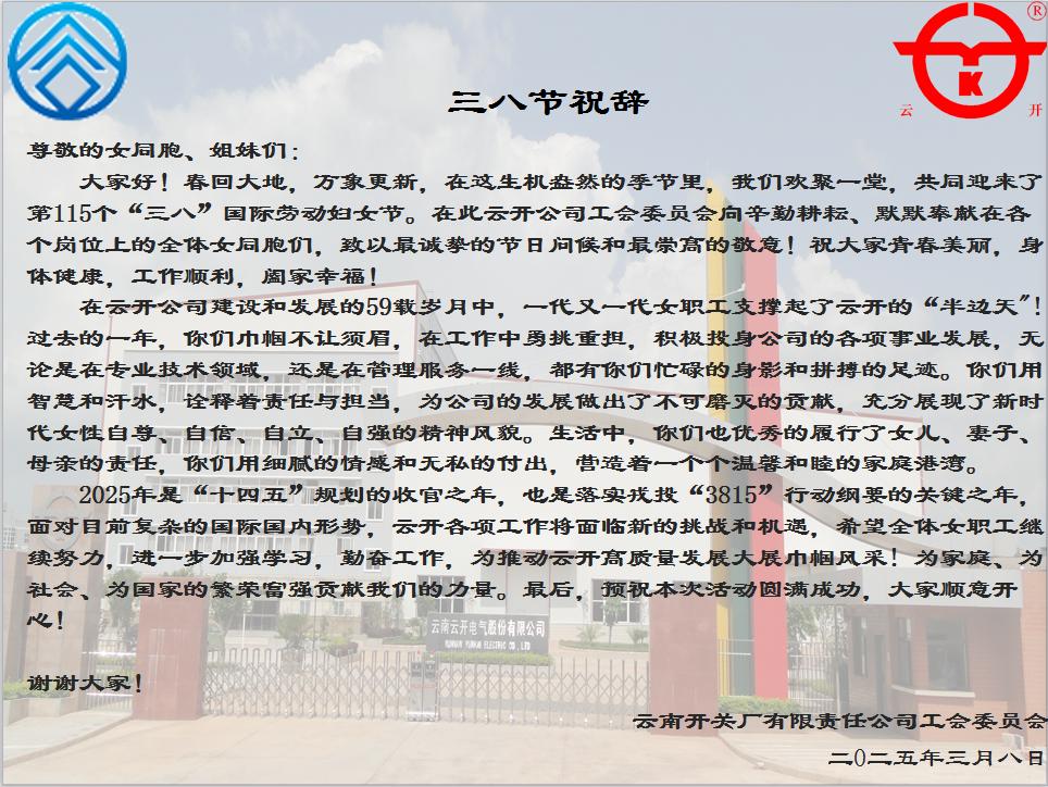 為豐富女職工業(yè)余文化生活,增強(qiáng)女職工組織的凝聚力、向心力,進(jìn)一步弘揚(yáng)“自尊、自愛(ài)、自強(qiáng)、自立”精神,3月8日,云南開(kāi)關(guān)廠有限責(zé)任公司工會(huì)女職工委員會(huì)組織開(kāi)展以“追夢(mèng)新時(shí)代 巾幗綻芳華”為主題的系列活動(dòng)。